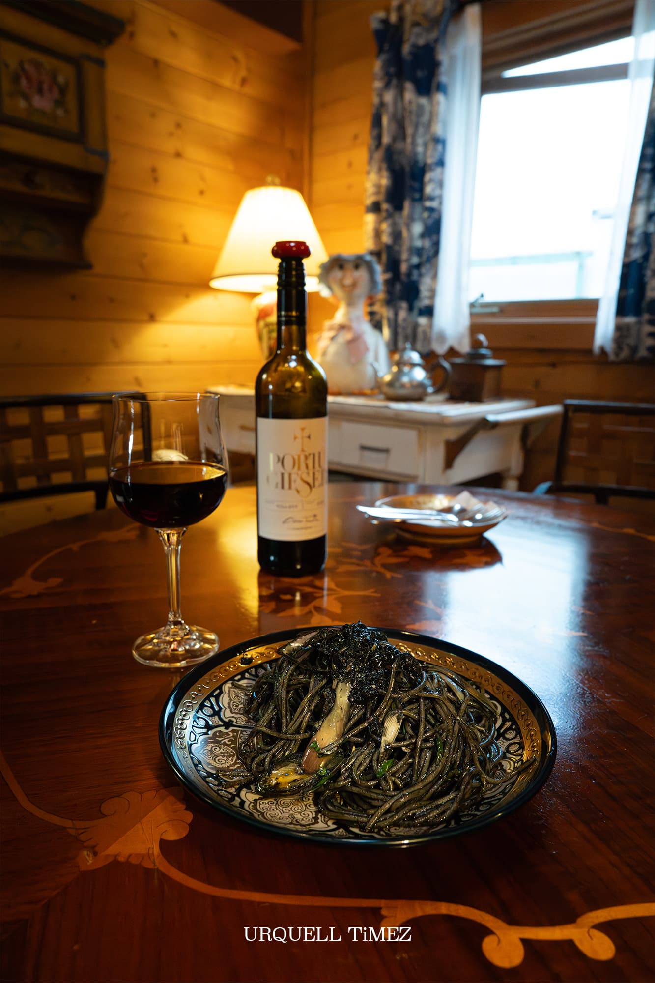 今回、私がいただいたのは「イカ墨とみょうがのパスタ」と「ハンガリーの赤ワイン」。