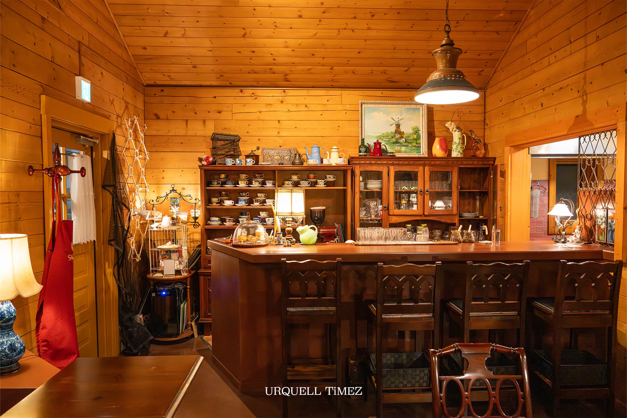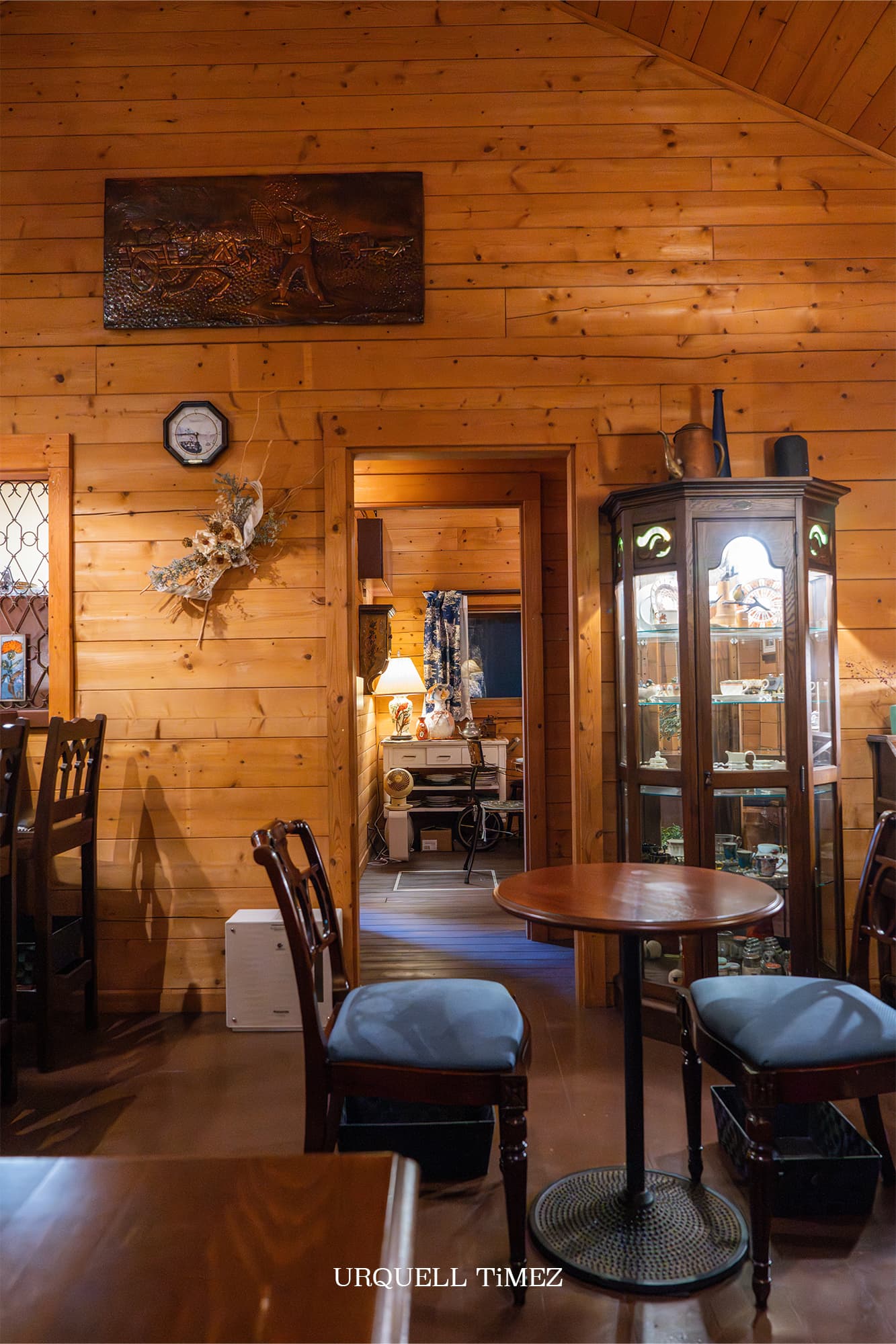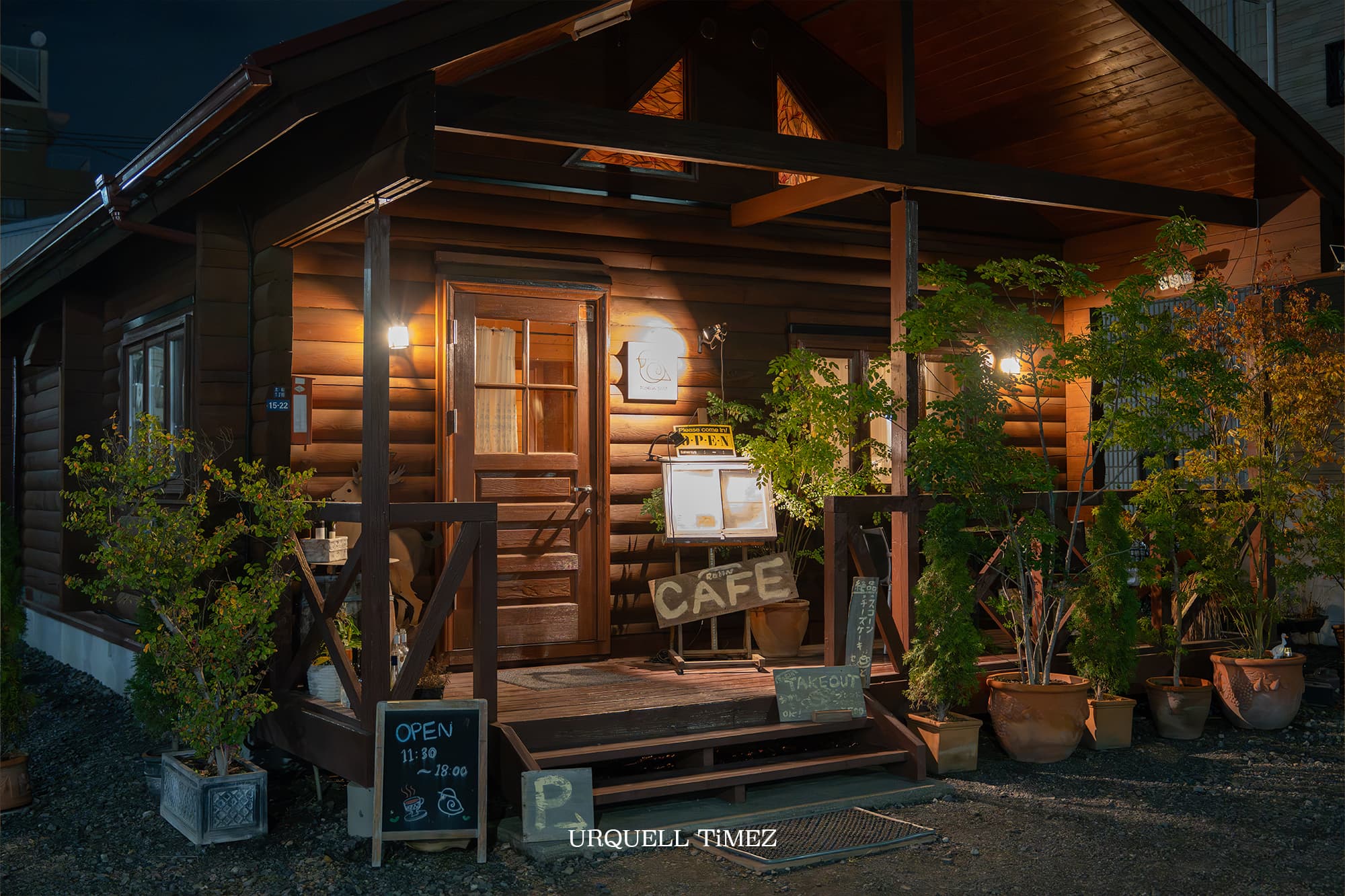 木の温もりを感じるログハウス風の建物が目印で、店内は落ち着いた雰囲気に包まれています。