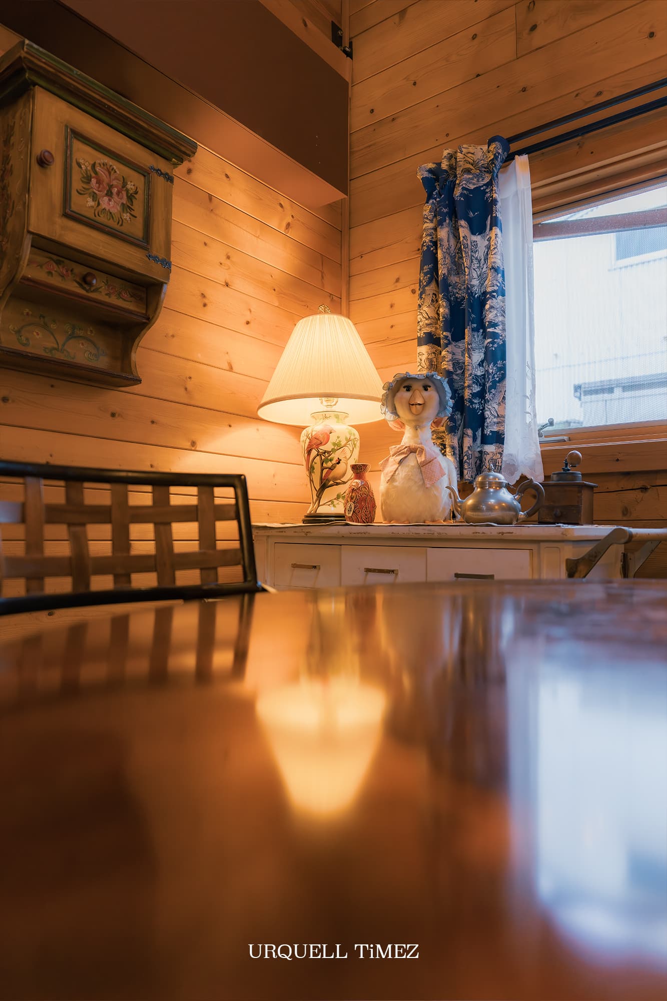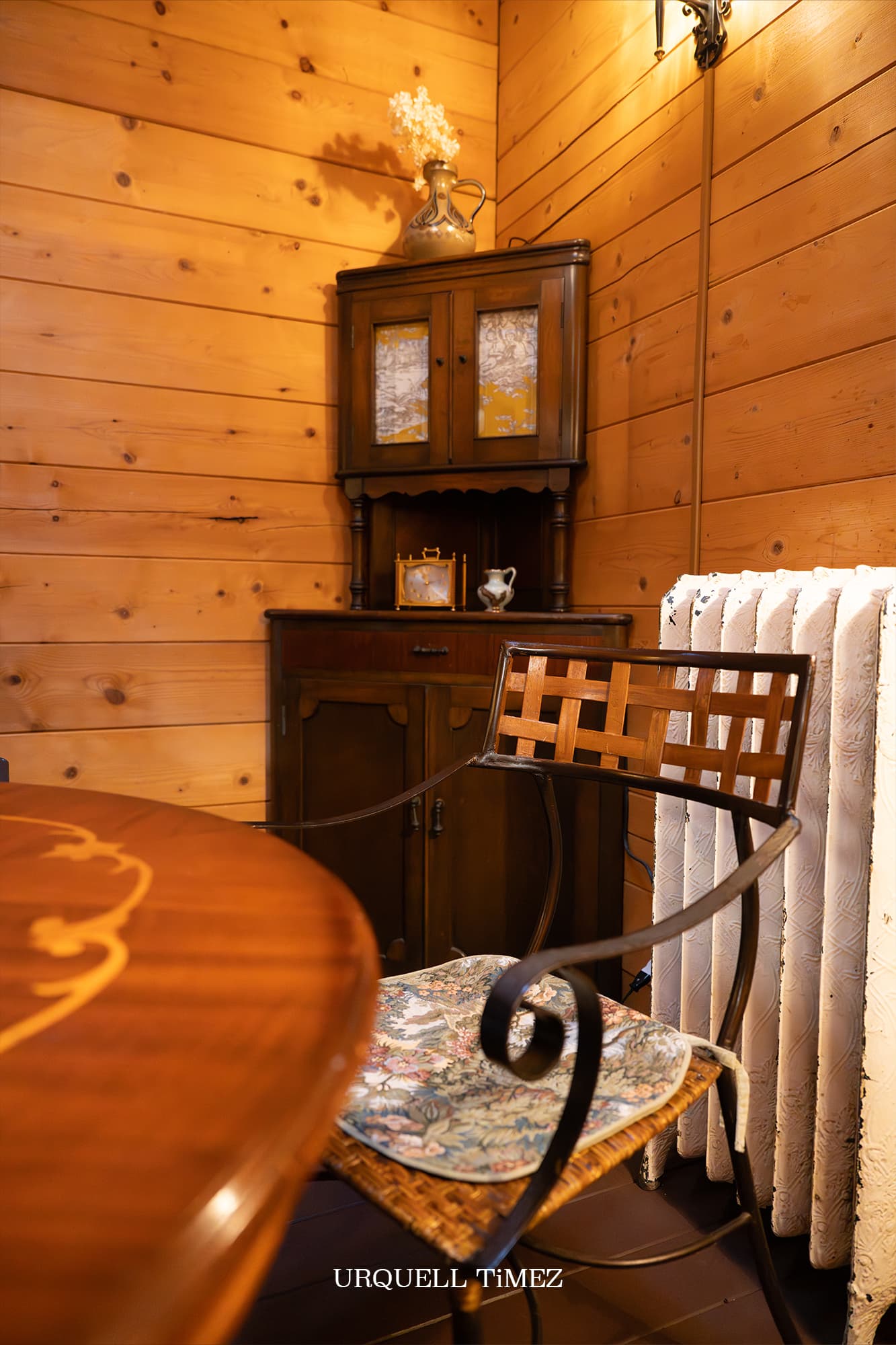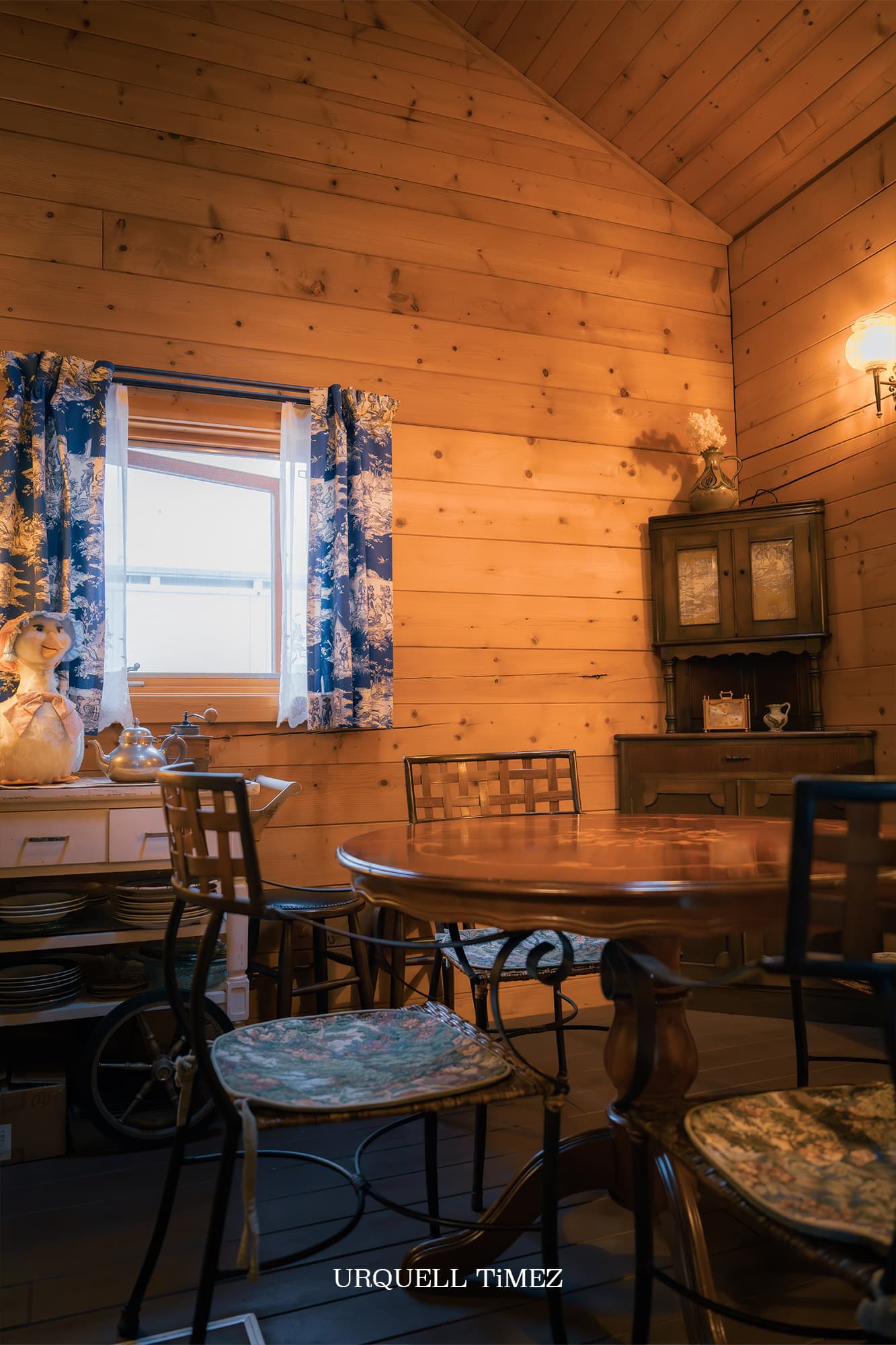 木の温もりを感じるログハウス風の建物が目印で、店内は落ち着いた雰囲気に包まれています。