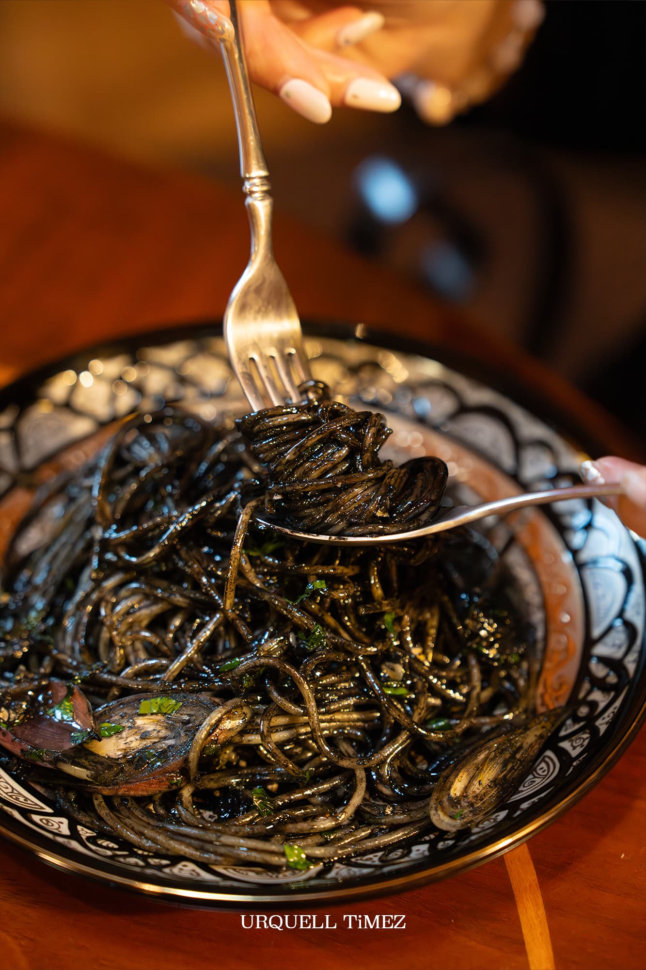 シャキシャキ感の残るミョウガとちょっとクセのある味わいが、イカ墨と本当によく合うんです。