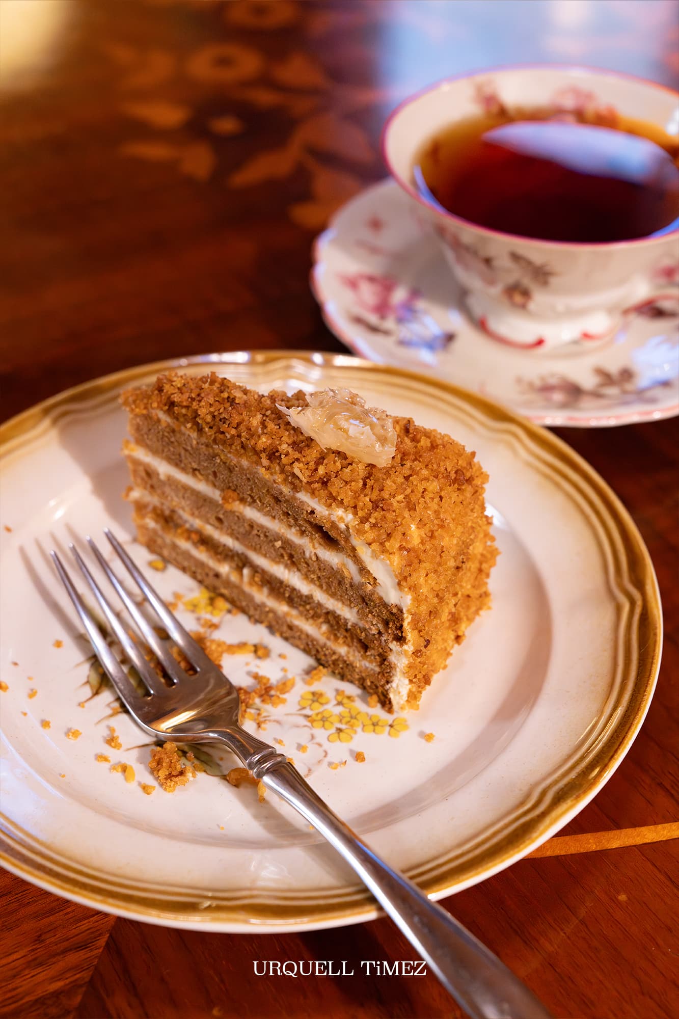 これはもはや、私が知るメドヴニークを超えた、一つの完成されたスイーツでした。上品な甘さの中に感じる蜂蜜の味わいをご堪能ください。