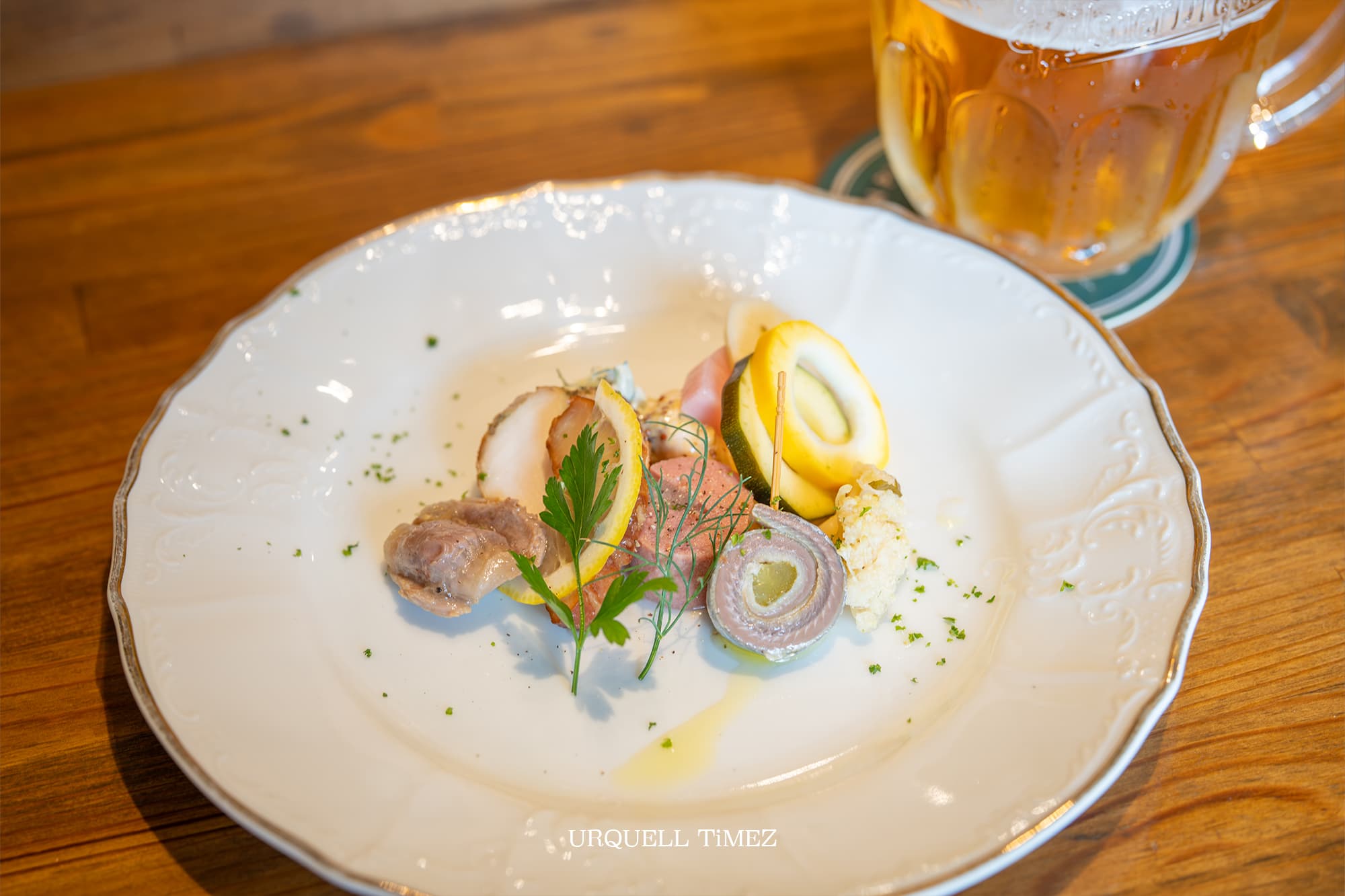 ソーセージの酢漬け「ウトペネツ(Utopenec)」や、魚の酢漬け「ザビナーチ(Zavináč)」など、爽やかな一皿に。素材一つひとつの色合いが引き立てられ、爽やかな酸味と旨味が口いっぱいに広がります。