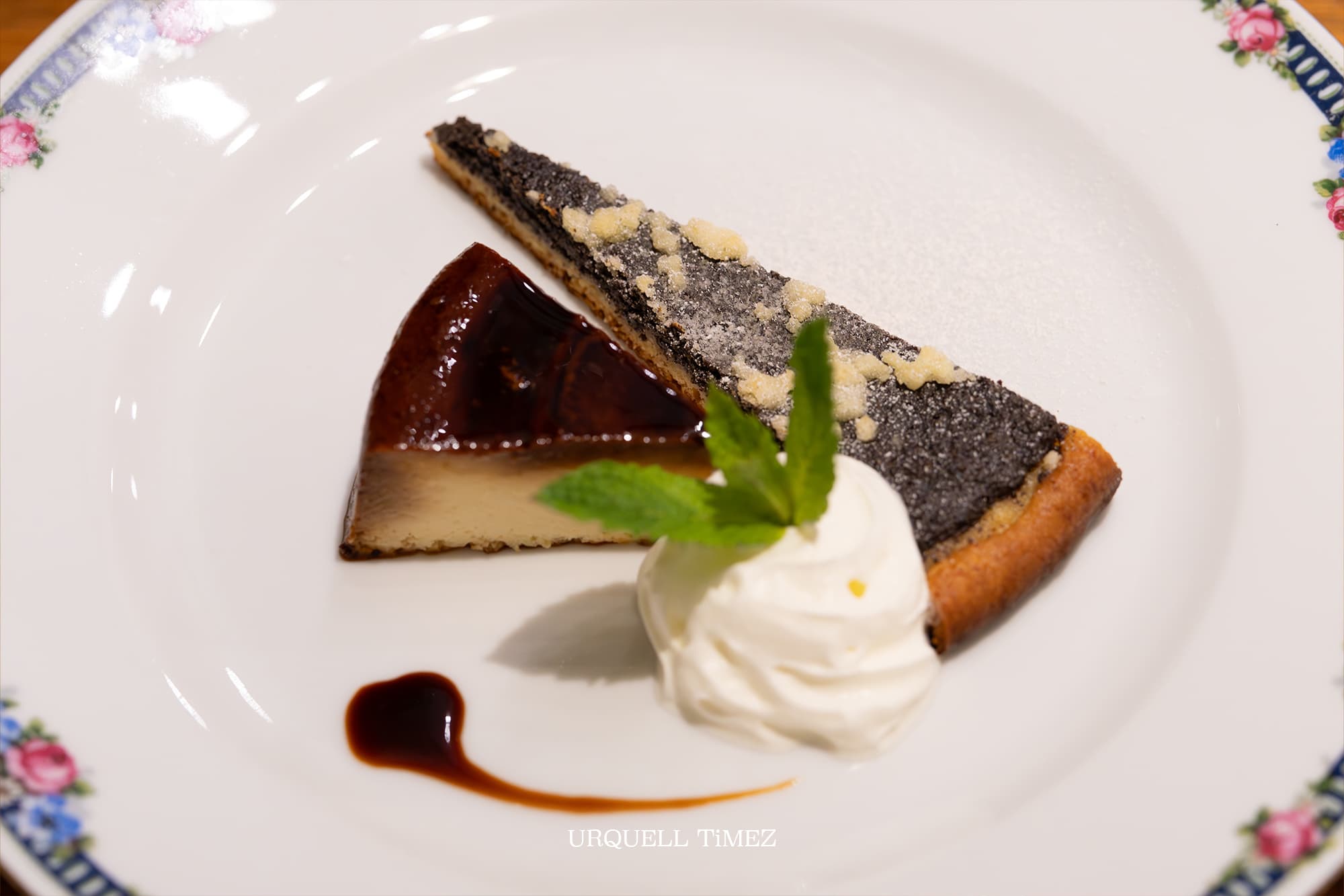 ケシの実をふんだんに使ったチェコの伝統的な焼き菓子「コラーチ」と、カマンベールチーズのプリンをいただきました。