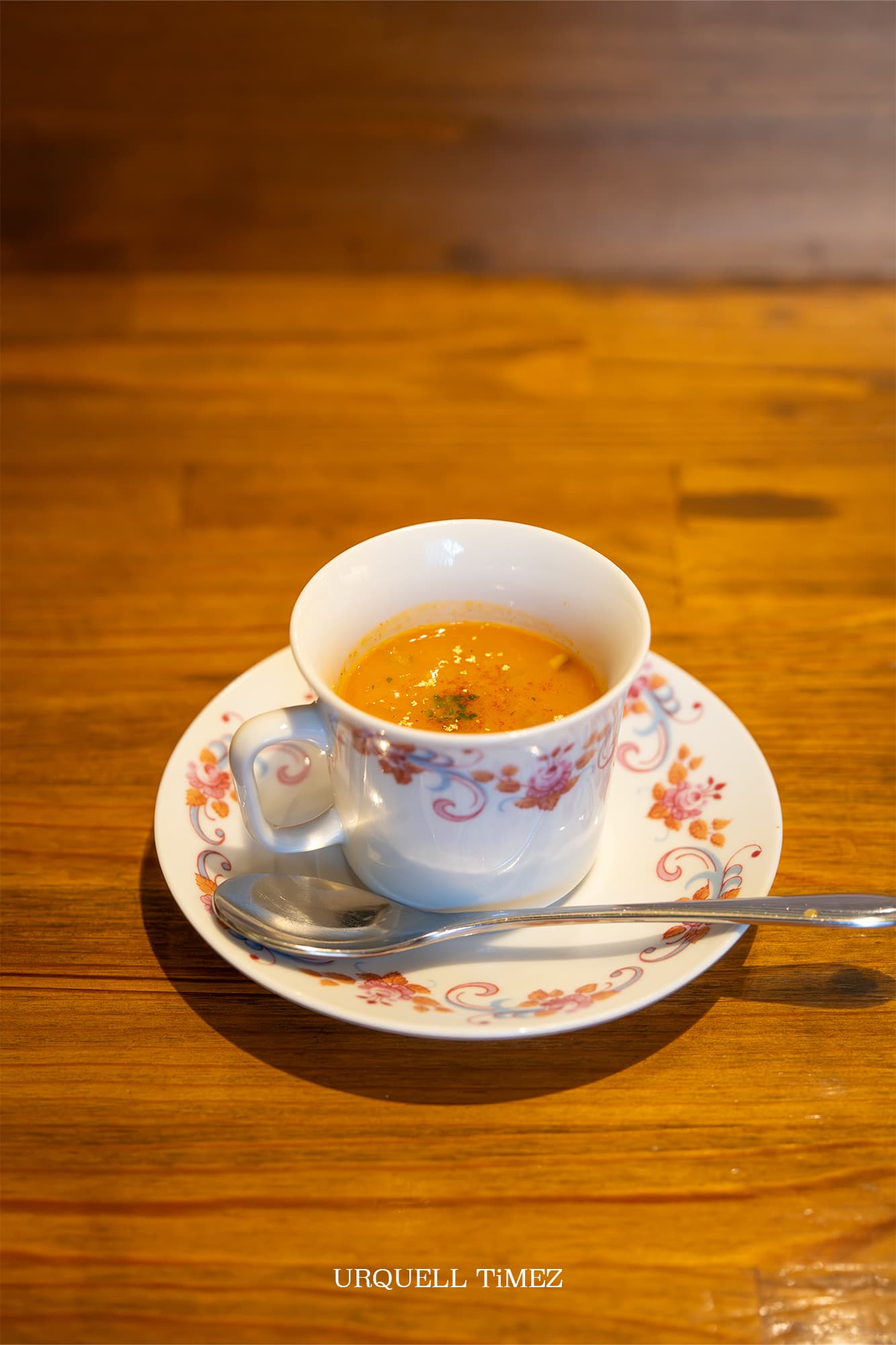 可愛らしいカップで提供されたスープは、丁寧に作られたことが伝わる、滋味深い味わいが体に染み渡ります。