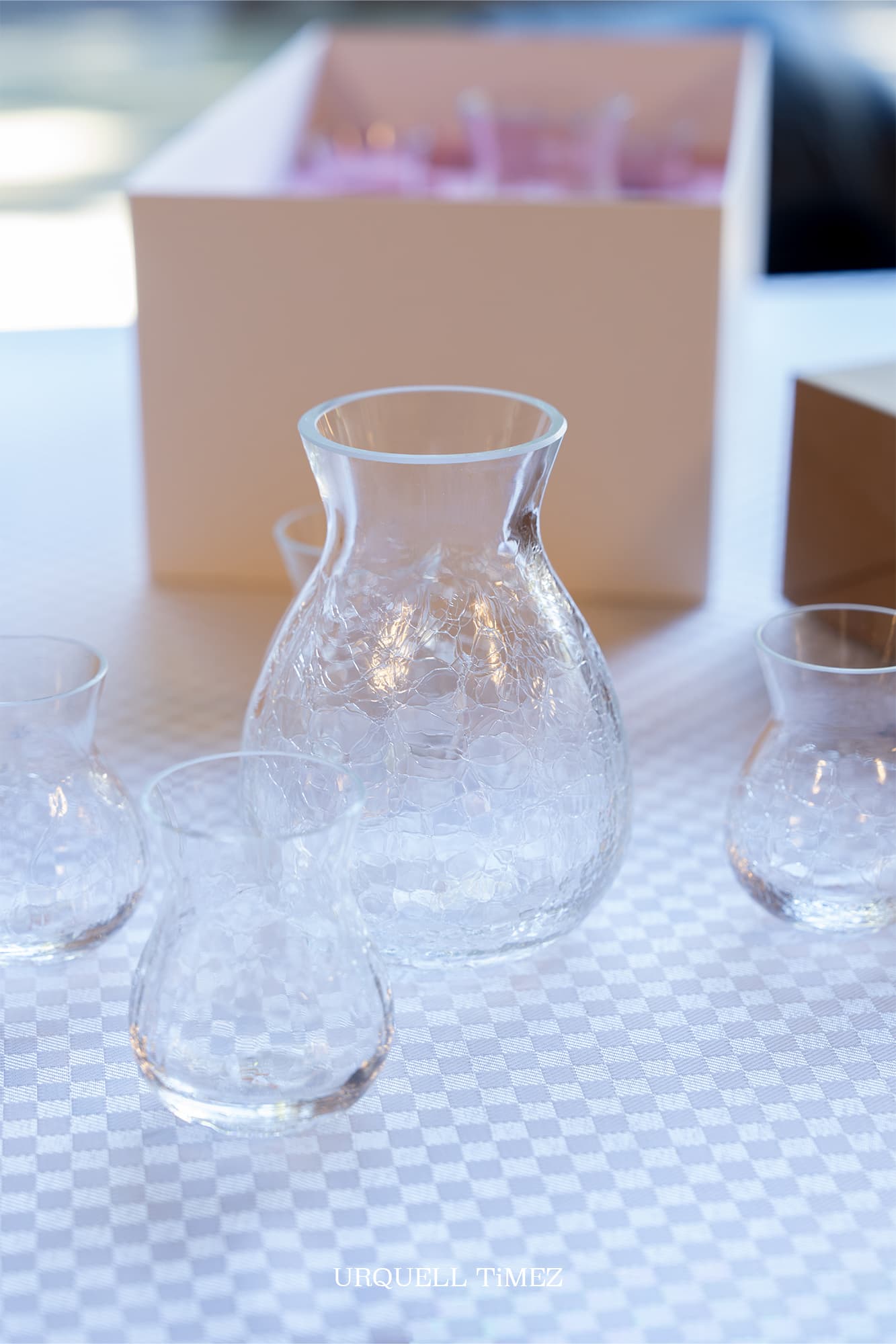 日本の酒造りの名匠との協働により、伝統的な酒器としての機能性を備えつつ、チェコの職人技で梅の花を思わせる繊細なクラック模様を表現。