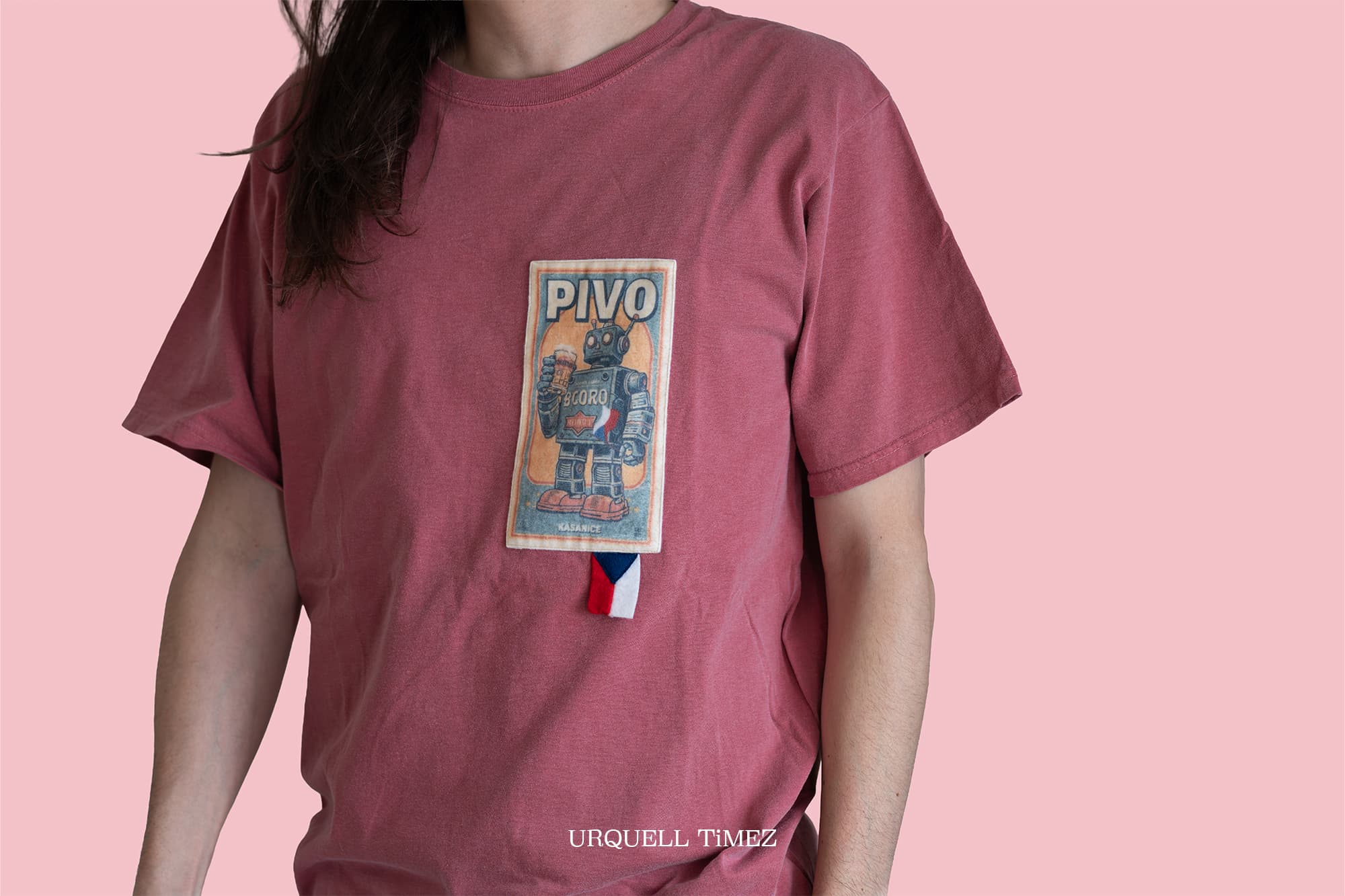 国民的ユーモアを着る。「PIVO(ビール)×ロボット」Tシャツ