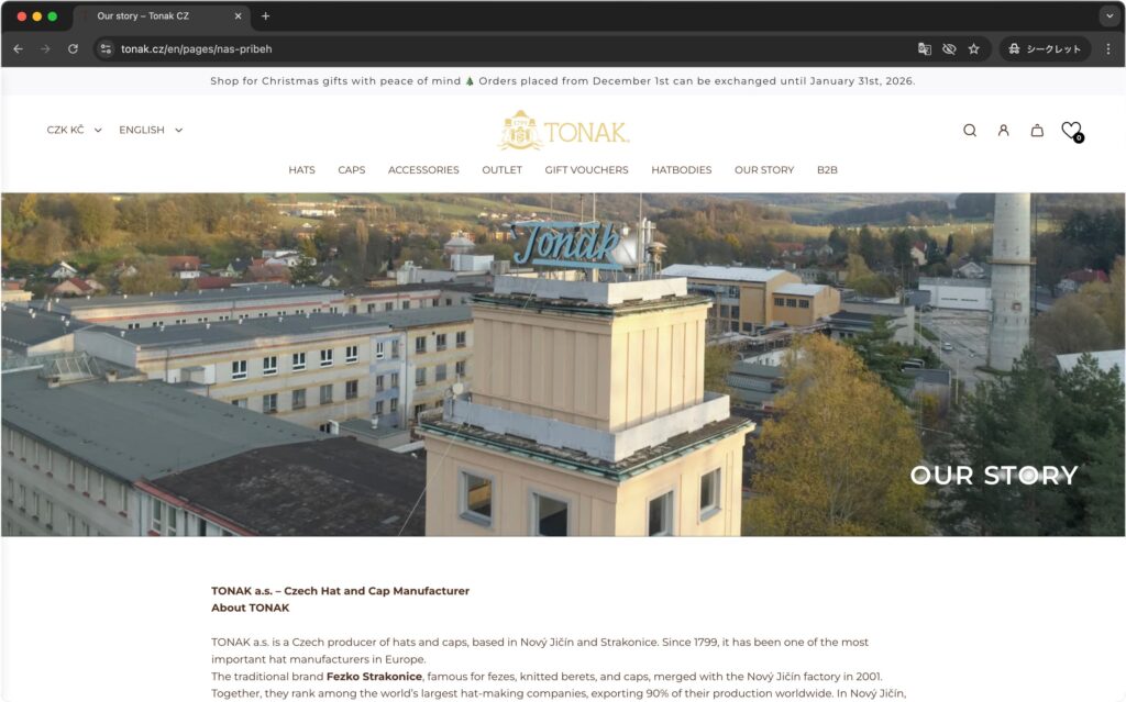 - 聖地ノヴィー・イチーン:創業の地であるこの街は、現在もTONAKの主要拠点。何世代にもわたって熟練の職人技が継承されている、世界でも稀有な「帽子の街」。