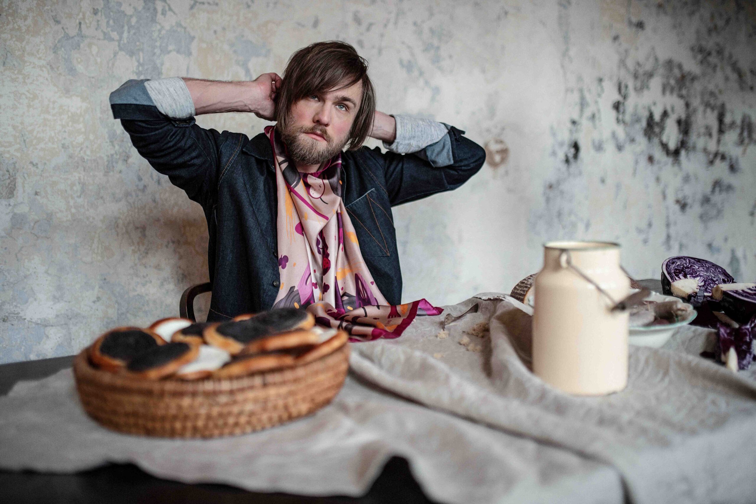 カルロヴィ・ヴァリ近郊の伝統技術で作られたお皿とスカーフを合わせる、究極のテーブルコーディネートも可能です。
