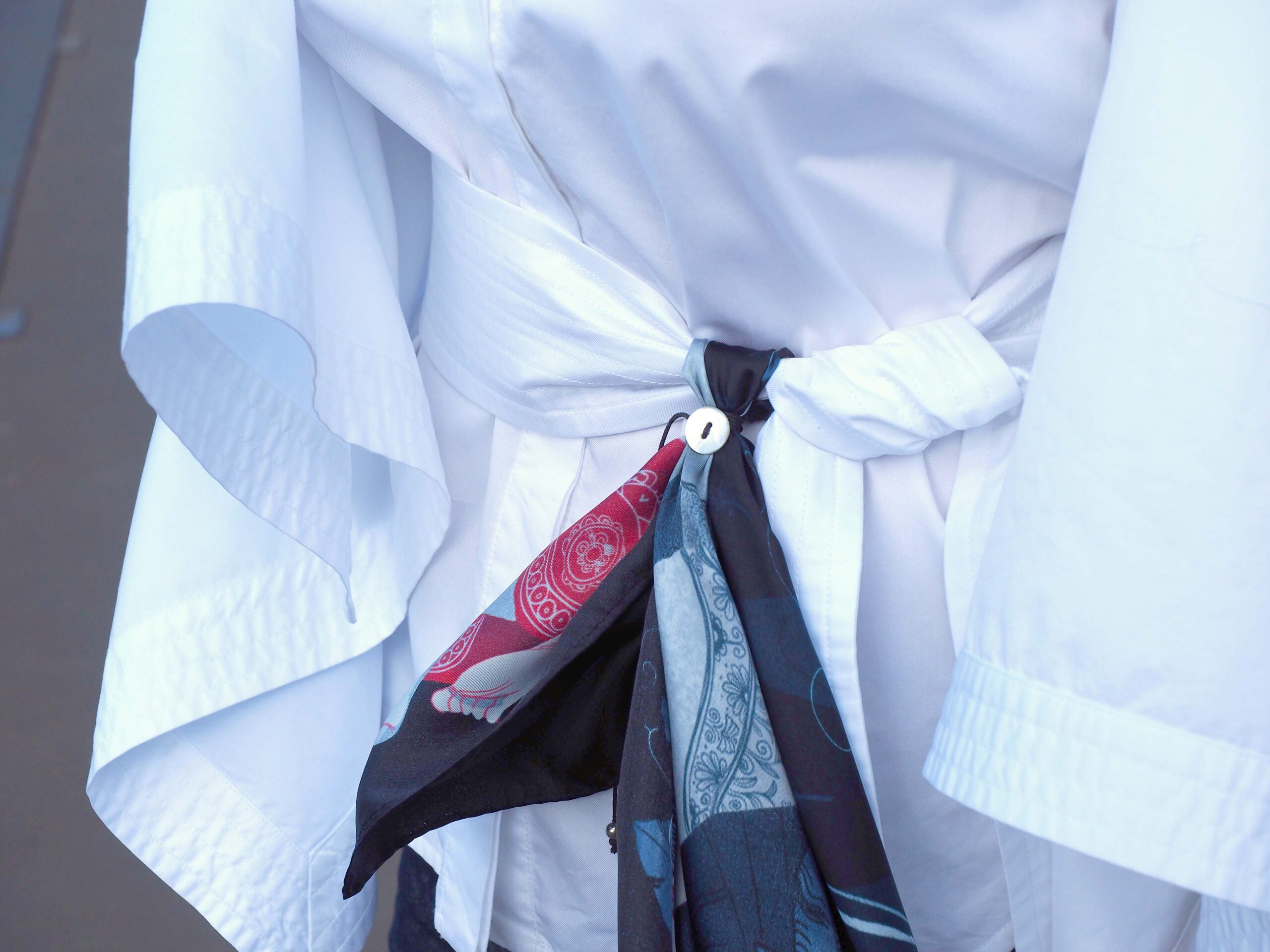 大きな結び目を作ることなく、スカーフを優雅に固定し、まるで服の一部であるかのように自在なドレープを作り出すことができます。